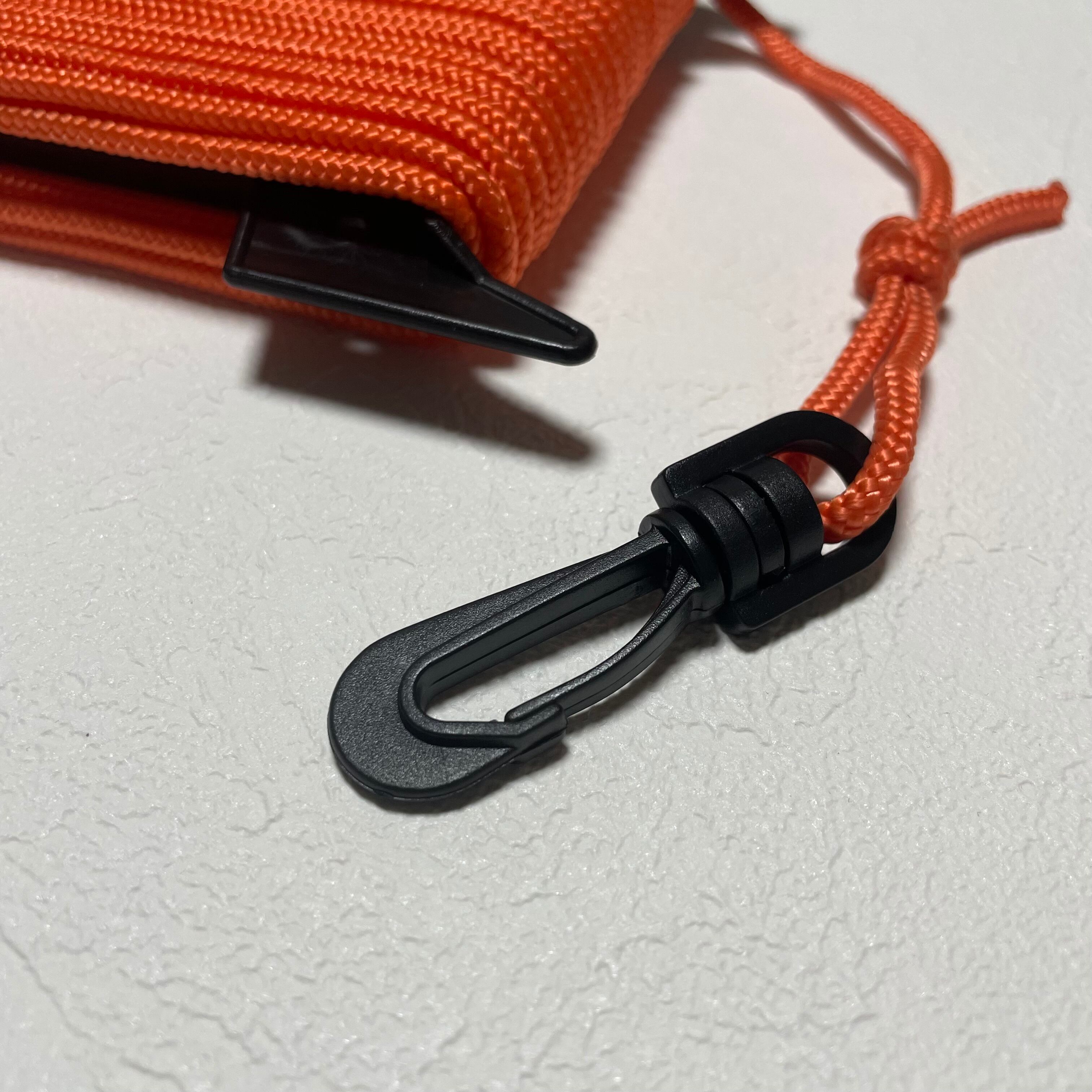 ホルダーとカラビナもセットです。OMERやサルビマーなどの有名メーカーのフロートのラインも樹脂製のカラビナを採用しており、耐久性はなんら問題ありません。