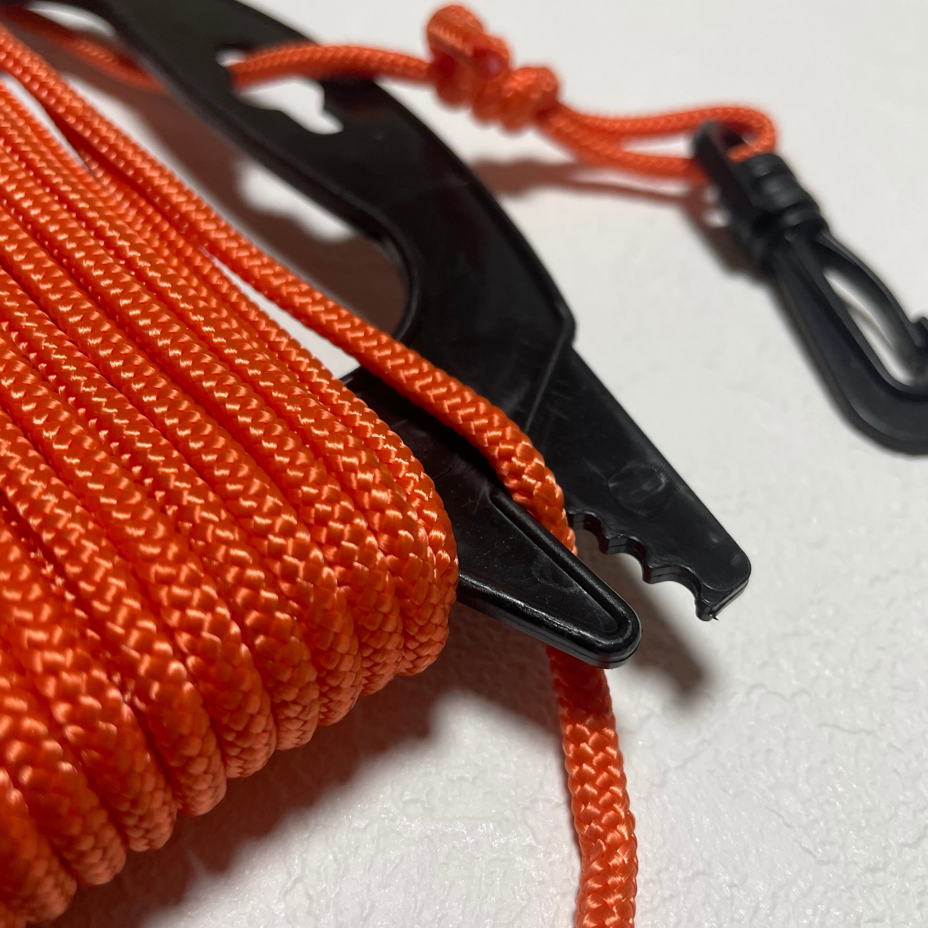 手銛の持ち手とフロートを接続する際にご使用いただけます。素材は数ある素材の中で最も水に浮きやすい素材にてロープを作成しておりますので、水中でのロープの沈みによる水中拘束や、岩などへの引っかかりなどのリスクを軽減します。